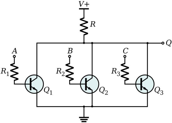 Keywords: RTL 3-Input NOR Gate.svg NOR gate built using Resistor-transistor logic Gates just like this but on integrated circuits were used in the Apollo Guidance Computer and can be seen on the original schematics Dwg No 2005011 can be found http //klabs org/history/ech/agc_schematics/logic/5011-1 jpg here own Inductiveload 2009-01-18 Resistor-transistor logic NOR gates Resistor circuits