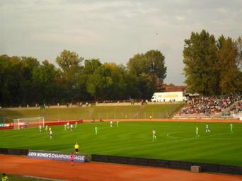 | Keywords: RTP Unia Racibórz - VfL Wolfsburg 27.09.2012 (4).JPG pl Pierwszy mecz 1/16 finału Ligi Mistrzów UEFA kobiet w sezonie 2012/2013 rozegrany 27 września 2012 roku na stadionie OSiR-u w Raciborzu pomiędzy RTP Unią Racibórz a niemieckim VfL Wolfsburg przegrany przez Unię 1 5 Spotkaniem tym ustanowiono nowy rekord frekwencji na meczu piłki nożnej kobiet w Polsce 5125 widzów 2012-09-27 16 11 16 own Olos88 50 097778 18 2175 cc-zero Uploaded with UploadWizard OSiR stadium in Racibórz Sports events in Racibórz UEFA Women's Champions League 2012-13 VfL Wolfsburg women |