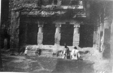| Keywords: RTW vol 1 017 (Gertrude Bell).jpg en Ellora Entrance to Buddhist Caves All the Buddhist caves except for cave 10 are viharas - monasteries rather than temples Two Indian men in foreground 1902-12-15 http //www gerty ncl ac uk/photos_in_album php album_id 19 Gertrude Bell other versions Custom license marker 2014 11 19 1926 Black and white photographs of India by Gertrude Bell Uploaded with UploadWizard | ||||