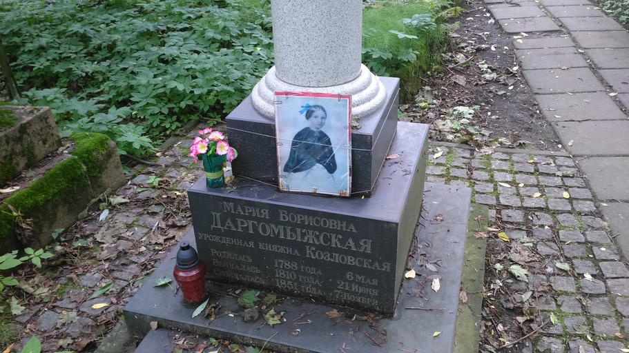 | Keywords: Ru-SPb-Maria-Boris-Dargom.jpg Art Photo en Tomb of Maria Borisovna Dargomyzhskaya née Kozlovskaya mother of Russian composer Aleksandr Sergeevich Dargomyzhskiy ru Памятник на могиле а ии Бо исовны Да гомыжской у ождённой Козловской мате и композито а Александ а Се геевича Да гомыжского Памятник восстановлен в 2006 году надпись сделана в новой о фог афии 1851 stone Russia Saint-Petersburg Smolensk Orthodox Cemetery object history exhibition history credit line accession number artwork license PD-Russia photo date 2016-06-29 Dj-2 own photo license cc-by-sa-4 0 Smolensk Orthodox cemetery |