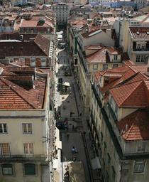 Keywords: Rua Da Santa Justa, Baixa, Lisbon.JPG 38 42 44 49 N 9 8 18 13 W heading E Rua ea Santa Justa Baixa Lisbon Portugal Own 2007-07-21 Szilas QualityImage Quality images of Lisbon 2007 in Lisbon July 2007 in Portugal Views of Rua de Santa Justa from Elevador de Santa Justa Black and white photographs of Lisbon Sidewalk cafés in Portugal Roofs in Lisbon