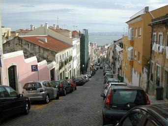 Keywords: RuaMadragoa.JPG pt Rua da Madragoa vendo-se ao fundo o estuário do Tejo own CorreiaPM dezembro 2009 ver abaixo Streets in Lisbon