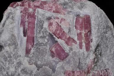 Keywords: Rubellite sur gangue (Brésil).jpg Rubellit und Quarz Rubellite and Quartz Cristaux de Rubellite sur gangue de Quartz Own 2009-04-21 Parent Géry Rubellite Quartz Taken with Nikon D90