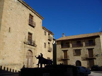 | Keywords: Rubielos de Mora 7.JPG Rubielos de Mora Plaza con el monumento al toro embolao del escultor José Gonzalvo Vives recortado a contraluz Own 2005-12 Tonipares Convento del Carmen Rubielos de Mora José Gonzalvo Vives Statues of bulls in Spain Toro embolado |
