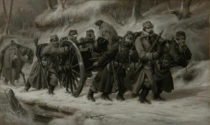 | Keywords: Rückzug aus dem Danewerk 5-6. Februar 1864.jpg Assessments 1 2016 02 05 Artwork Q21096128 en Episode of the retreat from Dannevirke 5 - 6 February 1864 - Battle of Sankelmark and Oeversee de Rückzug der dänischen Truppen aus den Danewerke am 5 bis zum 6 Februar 1864 - Schlacht um Oeversee und Sankelmark da Episode af tilbagetoget fra Dannevirke den 5 - 6 februar 1864 - Slaget ved Sankelmark og Oversø 1864 Grisaille cm 48 5 80 Institution Frederiksborgmuseet accession number A 4258 object history ProvenanceEvent 1927 purchase credit line N Simonsen - 1864 En dansk menig Jens Jacobsen fra 8 Regiment 5 Kompagni fortæller Lidt nord for Flensborg reddede vort kompagni en feltkanon som stod i grøften Premierløjtnant Schiøtt syntes det var en skam om tyskerne skulle have den Nogle artillerister som kom forbi kunne ikke tage den med for seletøjet til deres heste var sprunget Skal vi tage den med - foreslog han Jo det blev vi let enige om En flok tog straks fat og en syg kammerat kom op at køre Generalmajor Carl Caroc nævner i hans rapport om infanterireservens tilbagetog fra Dannevirke at 8 Regiment slæbte i alt to kanoner med fra Flensborg til GrÃ¥sten Den ene kanon som var fornaglet medtoges fra Nystaden Neustadt og den anden fra Klusris Skov Kluesries Næsten alle soldater i regimentet deltog ifølge Caroc pÃ¥ skift med at slæbe kanonerne google translation A Danish Private Jens Jacobsen from the 8th Regiment 5th Company says Just north of Flensburg saved our company one field cannon which stood in the ditch Lieutenant Schiøtt thought it was a shame that the Germans had to have it Some gunners who came past could not take it for harness their horses had jumped Should we take it - he suggested Yes we readily agreed A crowd immediately took hold and a sick friend get up to speed Major General Caroc mentions in his report on infanterireservens retreat from Dannevirke the 8th Regiment dragged a total of two guns from Flensburg to GrÃ¥sten One cannon which was fornaglet were included from Neustadt Neustadt and the other from Klues Forest Forest Kluesries Almost all the soldiers in the regiment participated according Caroc turns to drag the guns https //www kulturarv dk/kid/VisVaerk do vaerkId 96286 kulturarv dk and http //1864 dk/wp/wp-content/themes/1864/1864tidende ajax php object_id 177 img 177 jpg 1864 dk and http //1864 dk/arkivet/ projekt_id 177 str Arkivet « 1864 dk - photo Torbjørn Eriksen CAT Productions PD-old-100-1923 Oeversee Niels Simonsen 1864 paintings Battles in art History paintings Second Schleswig War Grisaille Featured pictures of people Featured pictures of Schleswig-Holstein |