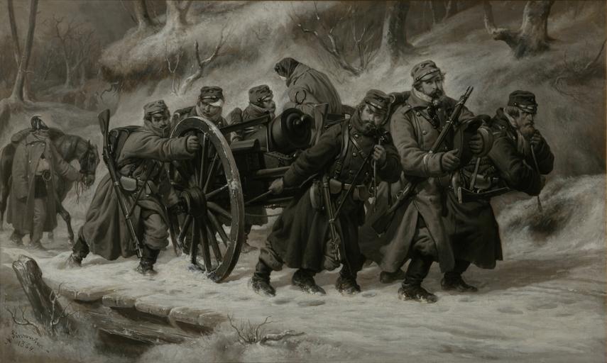 Keywords: Rückzug aus dem Danewerk 5-6. Februar 1864.jpg Assessments 1 2016 02 05 Artwork Q21096128 en Episode of the retreat from Dannevirke 5 - 6 February 1864 - Battle of Sankelmark and Oeversee de Rückzug der dänischen Truppen aus den Danewerke am 5 bis zum 6 Februar 1864 - Schlacht um Oeversee und Sankelmark da Episode af tilbagetoget fra Dannevirke den 5 - 6 februar 1864 - Slaget ved Sankelmark og Oversø 1864 Grisaille cm 48 5 80 Institution Frederiksborgmuseet accession number A 4258 object history ProvenanceEvent 1927 purchase credit line N Simonsen - 1864 En dansk menig Jens Jacobsen fra 8 Regiment 5 Kompagni fortæller Lidt nord for Flensborg reddede vort kompagni en feltkanon som stod i grøften Premierløjtnant Schiøtt syntes det var en skam om tyskerne skulle have den Nogle artillerister som kom forbi kunne ikke tage den med for seletøjet til deres heste var sprunget Skal vi tage den med - foreslog han Jo det blev vi let enige om En flok tog straks fat og en syg kammerat kom op at køre Generalmajor Carl Caroc nævner i hans rapport om infanterireservens tilbagetog fra Dannevirke at 8 Regiment slæbte i alt to kanoner med fra Flensborg til GrÃ¥sten Den ene kanon som var fornaglet medtoges fra Nystaden Neustadt og den anden fra Klusris Skov Kluesries Næsten alle soldater i regimentet deltog ifølge Caroc pÃ¥ skift med at slæbe kanonerne google translation A Danish Private Jens Jacobsen from the 8th Regiment 5th Company says Just north of Flensburg saved our company one field cannon which stood in the ditch Lieutenant Schiøtt thought it was a shame that the Germans had to have it Some gunners who came past could not take it for harness their horses had jumped Should we take it - he suggested Yes we readily agreed A crowd immediately took hold and a sick friend get up to speed Major General Caroc mentions in his report on infanterireservens retreat from Dannevirke the 8th Regiment dragged a total of two guns from Flensburg to GrÃ¥sten One cannon which was fornaglet were included from Neustadt Neustadt and the other from Klues Forest Forest Kluesries Almost all the soldiers in the regiment participated according Caroc turns to drag the guns https //www kulturarv dk/kid/VisVaerk do vaerkId 96286 kulturarv dk and http //1864 dk/wp/wp-content/themes/1864/1864tidende ajax php object_id 177 img 177 jpg 1864 dk and http //1864 dk/arkivet/ projekt_id 177 str Arkivet « 1864 dk - photo Torbjørn Eriksen CAT Productions PD-old-100-1923 Oeversee Niels Simonsen 1864 paintings Battles in art History paintings Second Schleswig War Grisaille Featured pictures of people Featured pictures of Schleswig-Holstein