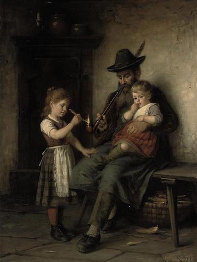 | Keywords: Rudolf Epp - Ein Mädchen entzündet des Großvaters Pfeife.jpg Artwork Creator Rudolf Epp oil on canvas cm 81 4 61 6 accession number http //www rudolf-epp de/galerie/gal0313 htm Rudolf Epp Werkverzeichnis<br/>http //www arcadja com/auctions/de/private/epp_rudolf/kunstwerken/9149/0/ ARCADJA auction results object history Lempertz Köln 19 Mai 2007 Lot 1501<br/>Christie's London 12 September 2007 Lot 107<br/>Christie's London 10 Dezember 2010 Lot 3058<br/>Dreweatts Newbury 12 Oktober 2011 Pictures from the collection of Tony Haynes Snr Lot 99 credit line exhibition history R Epp ~ lower right signature Werk Verz EW 313 christies online 5398831 5494 3058 London 10 December 2010 page no more available PD-old-100 Rudolf Epp Smoking men in art |