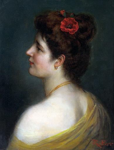 | Keywords: Rudolf Epp Junge Frau mit Klatschmohnblüten.jpg  Oil canvas cm 46 37 5 object history credit line ~ lower right signature accession number http //www hofbauer-media de/ PD-art-100 Profile portraits of women Papaver in art Portrait paintings of females with flowers Temporary for Cat-a-lot - Female humans Shoulders in art Nape Hair in art People with flowers Human noses in art Females with neutral background Female faces in profile Females looking left in art People with jewellery People with plants Oil paintings of women Rudolf Epp Women facing left in art |
