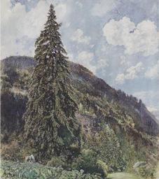 | Keywords: Rudolf von Alt - Die große Fichte in Gastein - 1899.jpeg Die große Fichte in Gastein watercolor Gouache Paper 57 x 50 9 cm Leopold Museum repro from artbook 1899 ª Creator Rudolf von Alt ¬ PD-old-100 Other versions Austria in art by Rudolf von Alt Paintings of Bad Gastein Leopold Museum collection 1899 in Austria |