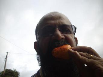Rudolph.A.Furtado eating a 'Cashew Fruit' plucked from a tree..JPG (3264x2448)