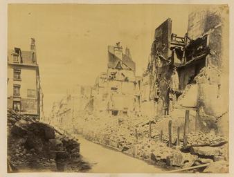 | Keywords: Rue du Bac WDL1331.png Artwork ru Б аквейе Б уно 1823 1875 гг fr Braquehais Bruno 1823-1875 en Braquehais Bruno 1823-1875 zh 布鲁诺·布拉奇海 ,1823-1875 年 pt Braquehais Bruno 1823-1875 ar براكهيه برونو، 1823-1875 es Braquehais Bruno 1823-1875 ru Рю дю Бак fr Rue du Bac en Rue du Bac zh 巴克街 pt Rue du Bac ar شارع باك ru П ичиной ф анко-п усской войны стал ост нап яженности в отношениях между Ф анцией и П уссией в 1860-х гг Ф анция п и импе ато е аполеоне III была полна ешимости п ове ить астущую силу П уссии и отомстить за то что она ассмат ивала как яд дипломатических унижений П уссия п и канцле е Отто фон Бисма ке считала что война ге манских госуда ств п отив Ф анции под уководством П уссии станет ешающим шагом к созданию единой Ге манской импе ии Конфликт начался 19 июля 1870 г когда Ф анция объявила войну Ф анцузская а мия оказалась ужасно неподготовленной и поте пела сок ушительное по ажение в битве п и Седане отк ыв до огу на Па иж К 19 сентяб я немцкие войска полностью ок ужили го од и начали осаду кото ая п одлилась более четы ех месяцев От езанные от поставок п одовольствия из сельской местности па ижане пытались выжить питаясь собаками кошками и даже животными из па ижского зоопа ка Де евья на Елисейских полях и в па ках были вы ублены и использованы в качестве топлива 5 янва я немецкие войска начали бомба ди овку го ода кото ая п одолжалась по несколько часов каждую ночь в течение 23 суток а ок естности Па ижа было сб ошено около 12 000 сна ядов кото ые убили около 400 человек Па иж сдался 28 янва я в сущности положив конец войне За по ажением ф анцузов последовало на одное восстание и установление в а те 1871г Па ижской коммуны еволюционного п авительства сфо ми ованного в соответствии с ана хистскими и социалистическими п инципами Коммуна была жестоко подавлена в мае 1871 г ф анцузскими войсками п авительства Адольфа Тье а Во в емя неп одолжительного конт оля над Па ижем коммуна ы аз ушали импе ато скую колонну на Вандомской площади Подавление коммуны п ивело к дальнейшим значительным аз ушениям в го оде когда коммуна ы подожгли дво ец Тюиль и Лув и д угие здания К оме того многие здания пост адали или были аз ушены во в емя отчаянной пе ест елки между коммуна ами и конт еволюционными силами Siege de Paris 1870 1871 Осада Па ижа 1870 1871 гг п едставляет собой альбом из 110 фотог афий сделанных Огюстом Б уно Б аквейе 1823 1875 гг ф анцузским фотог афом и п ог ессивным фотожу налистом документи овавшим осаду и последствия бомба ди овок а также аз ушения п оизошедшие во в емя Па ижской коммуны <br>Ф анко-п усская война 1870 1871 гг ; Память ми а; Рю де Лиль Па иж Ф анция ; Рю де Бак Па иж Ф анция ; Уще б нанесенный войной fr La guerre franco-allemande fut provoquée par l escalade des tensions entre la France et la Prusse dans les années 1860 La France sous l empereur Napoléon III était déterminée à contenir la croissance de la puissance prussienne et à venger ce qui était considéré comme une série d humiliations diplomatiques La Prusse sous le chancelier Otto von Bismarck considérait qu une guerre dirigée par la Prusse et menée par les États allemands contre la France serait un acte décisif menant à la création d un empire allemand unifié Le conflit débuta le 19 juillet 1870 jour où la France déclara la guerre L armée française s avéra terriblement mal préparée et subit une défaite désastreuse lors de la bataille de Sedan laissant la voie libre vers Paris Le 19 septembre les Allemands encerclèrent complètement la ville et commencèrent un siège qui allait durer plus de quatre mois Coupés du ravitaillement provenant de la campagne les Parisiens survécurent en mangeant les chiens les chats et même la plupart des animaux du zoo de Paris Les arbres des Champs-Élysées et des parcs furent coupés et brûlés pour servir de combustible Le 5 janvier les armées allemandes entreprirent le bombardement de la ville qui dura plusieurs heures chaque nuit durant 23 nuits Environ 12 000 obus tombèrent sur les quartiers de Paris tuant près de 400 personnes Paris capitula le 28 janvier mettant ainsi fin à la