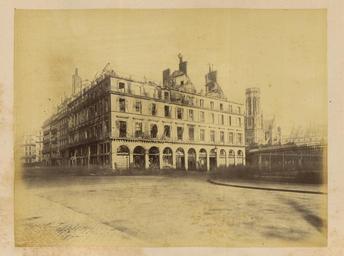 | Keywords: Rue Rivoli; Corner of Place Saint-Germain-l'Auxerrois WDL1267.png Artwork Creator Bruno Braquehais ru Улица Риволи угол площади Сен-Же мен-л'Оксе уа fr Rue Rivoli angle de la place Saint-Germain l Auxerrois en Rue Rivoli; Corner of Place Saint-Germain-l'Auxerrois zh 里沃利街; 日 曼欧塞尔广 角 pt Rue Rivoli; esquina da Praça de Saint-Germain-l'Auxerrois ar شارع ريفولي؛ جانب من ميدان سان چيرمان لوكسيرو ru П ичиной ф анко-п усской войны стал ост нап яженности в отношениях между Ф анцией и П уссией в 1860-х гг Ф анция п и импе ато е аполеоне III была полна ешимости п ове ить астущую силу П уссии и отомстить за то что она ассмат ивала как яд дипломатических унижений П уссия п и канцле е Отто фон Бисма ке считала что война ге манских госуда ств п отив Ф анции под уководством П уссии станет ешающим шагом к созданию единой Ге манской импе ии Конфликт начался 19 июля 1870 г когда Ф анция объявила войну Ф анцузская а мия оказалась ужасно неподготовленной и поте пела сок ушительное по ажение в битве п и Седане отк ыв до огу на Па иж К 19 сентяб я немцкие войска полностью ок ужили го од и начали осаду кото ая п одлилась более четы ех месяцев От езанные от поставок п одовольствия из сельской местности па ижане пытались выжить питаясь собаками кошками и даже животными из па ижского зоопа ка Де евья на Елисейских полях и в па ках были вы ублены и использованы в качестве топлива 5 янва я немецкие войска начали бомба ди овку го ода кото ая п одолжалась по несколько часов каждую ночь в течение 23 суток а ок естности Па ижа было сб ошено около 12 000 сна ядов кото ые убили около 400 человек Па иж сдался 28 янва я в сущности положив конец войне За по ажением ф анцузов последовало на одное восстание и установление в а те 1871г Па ижской коммуны еволюционного п авительства сфо ми ованного в соответствии с ана хистскими и социалистическими п инципами Коммуна была жестоко подавлена в мае 1871 г ф анцузскими войсками п авительства Адольфа Тье а Во в емя неп одолжительного конт оля над Па ижем коммуна ы аз ушали импе ато скую колонну на Вандомской площади Подавление коммуны п ивело к дальнейшим значительным аз ушениям в го оде когда коммуна ы подожгли дво ец Тюиль и Лув и д угие здания К оме того многие здания пост адали или были аз ушены во в емя отчаянной пе ест елки между коммуна ами и конт еволюционными силами Siege de Paris 1870 1871 Осада Па ижа 1870 1871 гг п едставляет собой альбом из 110 фотог афий сделанных Огюстом Б уно Б аквейе 1823 1875 гг ф анцузским фотог афом и п ог ессивным фотожу налистом документи овавшим осаду и последствия бомба ди овок а также аз ушения п оизошедшие во в емя Па ижской коммуны <br>Колокольни; Ф анко-п усская война 1870 1871 гг ; Память ми а; Улица Риволи Па иж Ф анция ; Сен-Же мен-л'Оксе уа це ковь Па иж Ф анция ; Уще б нанесенный войной fr La guerre franco-allemande fut provoquée par l escalade des tensions entre la France et la Prusse dans les années 1860 La France sous l empereur Napoléon III était déterminée à contenir la croissance de la puissance prussienne et à venger ce qui était considéré comme une série d humiliations diplomatiques La Prusse sous le chancelier Otto von Bismarck considérait qu une guerre dirigée par la Prusse et menée par les États allemands contre la France serait un acte décisif menant à la création d un empire allemand unifié Le conflit débuta le 19 juillet 1870 jour où la France déclara la guerre L armée française s avéra terriblement mal préparée et subit une défaite désastreuse lors de la bataille de Sedan laissant la voie libre vers Paris Le 19 septembre les Allemands encerclèrent complètement la ville et commencèrent un siège qui allait durer plus de quatre mois Coupés du ravitaillement provenant de la campagne les Parisiens survécurent en mangeant les chiens les chats et même la plupart des animaux du zoo de Paris Les arbres des Champs-Élysées et des parcs furent coupés et brûlés pour servir de combustible Le 5 janvier les armées allemandes entreprirent le bombardement de la ville qui dura plusi