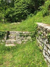 Keywords: ruin hermitage st ursanne stairs wall switzerland green forest stone
