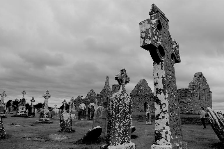 Keywords: ruin ireland clonmacnoise castle crosses cemetery celtic crosses