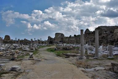 Keywords: ruin side turkey ruins of side building antiquity turkish riviera columnar away travel concrete landscape sky clouds roadway architecture view stones places of interest scenic
