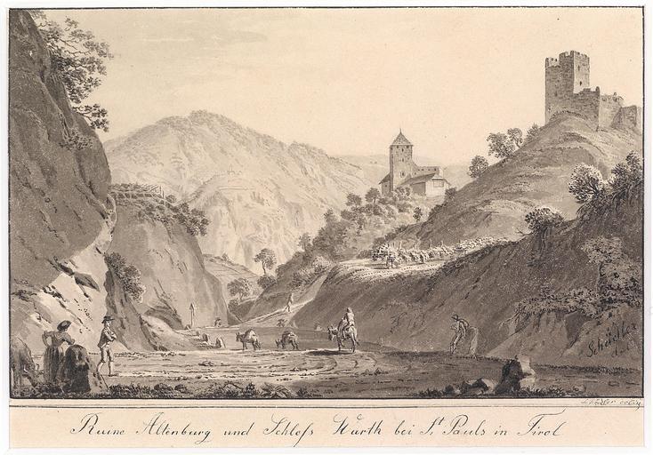 | Keywords: Ruine Altenburg und Burg Warth bei St Pauls in Südtirol.jpg Ruine Altenburg und Burg Warth bei St Pauls in Südtirol betitelt signiert Schödler del Grisailleaquarell auf Papier 10 x 14 cm Österreich um 1820 Denkmalgeschütztes Objekt Südtirol 14765 Denkmalgeschütztes Objekt Südtirol 14694 http //www dorotheum com Dorotheum ~ 1820 Schödler PD-old-100 ImageNote 1 2715 194 527 536 3296 2300 2 Altenburg ImageNoteEnd 1 ImageNote 2 1908 598 387 462 3296 2300 2 Warth ImageNoteEnd 2 Images from Dorotheum Castle Warth Eppan Altenburg Castle St Pauls Castles in art |