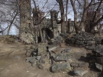 Keywords: ruins ancient castle fortress stone old crumbling abandoned trees fort medieval turrets towers historic architecture landmark park