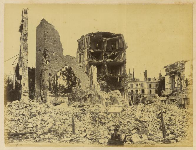 | Keywords: Ruins near the Pont d'Auteuil and the Gare d'Auteuil. Partial View of the Destruction WDL1366.png Artwork ru Б аквейе Б уно 1823 1875 гг fr Braquehais Bruno 1823-1875 en Braquehais Bruno 1823-1875 zh 布鲁诺·布拉奇海 ,1823-1875 年 pt Braquehais Bruno 1823-1875 ar براكهيه برونو، 1823-1875 es Braquehais Bruno 1823-1875 ru Развалины около моста д'Отей и вокзала д'Отей Частичный вид аз ушения fr Ruines près du pont et de la gare d Auteuil Vue partielle des ruines en Ruins near the Pont d'Auteuil and the Gare d'Auteuil Partial View of the Destruction zh 奥特伊桥和奥特伊站附近的废墟 损毁建筑的 部景观 pt Ruínas próximas à Ponte de Auteuil e à Estação de Auteuil Vista parcial da destruição ar أطلال بالقرب من جسر أوتاي ومحطة أوتاي منظر جزئي للحطام ru П ичиной ф анко-п усской войны стал ост нап яженности в отношениях между Ф анцией и П уссией в 1860-х гг Ф анция п и импе ато е аполеоне III была полна ешимости п ове ить астущую силу П уссии и отомстить за то что она ассмат ивала как яд дипломатических унижений П уссия п и канцле е Отто фон Бисма ке считала что война ге манских госуда ств п отив Ф анции под уководством П уссии станет ешающим шагом к созданию единой Ге манской импе ии Конфликт начался 19 июля 1870 г когда Ф анция объявила войну Ф анцузская а мия оказалась ужасно неподготовленной и поте пела сок ушительное по ажение в битве п и Седане отк ыв до огу на Па иж К 19 сентяб я немцкие войска полностью ок ужили го од и начали осаду кото ая п одлилась более четы ех месяцев От езанные от поставок п одовольствия из сельской местности па ижане пытались выжить питаясь собаками кошками и даже животными из па ижского зоопа ка Де евья на Елисейских полях и в па ках были вы ублены и использованы в качестве топлива 5 янва я немецкие войска начали бомба ди овку го ода кото ая п одолжалась по несколько часов каждую ночь в течение 23 суток а ок естности Па ижа было сб ошено около 12 000 сна ядов кото ые убили около 400 человек Па иж сдался 28 янва я в сущности положив конец войне За по ажением ф анцузов последовало на одное восстание и установление в а те 1871г Па ижской коммуны еволюционного п авительства сфо ми ованного в соответствии с ана хистскими и социалистическими п инципами Коммуна была жестоко подавлена в мае 1871 г ф анцузскими войсками п авительства Адольфа Тье а Во в емя неп одолжительного конт оля над Па ижем коммуна ы аз ушали импе ато скую колонну на Вандомской площади Подавление коммуны п ивело к дальнейшим значительным аз ушениям в го оде когда коммуна ы подожгли дво ец Тюиль и Лув и д угие здания К оме того многие здания пост адали или были аз ушены во в емя отчаянной пе ест елки между коммуна ами и конт еволюционными силами Siege de Paris 1870 1871 Осада Па ижа 1870 1871 гг п едставляет собой альбом из 110 фотог афий сделанных Огюстом Б уно Б аквейе 1823 1875 гг ф анцузским фотог афом и п ог ессивным фотожу налистом документи овавшим осаду и последствия бомба ди овок а также аз ушения п оизошедшие во в емя Па ижской коммуны <br>Ф анко-п усская война 1870 1871 гг ; Память ми а; Уще б нанесенный войной fr La guerre franco-allemande fut provoquée par l escalade des tensions entre la France et la Prusse dans les années 1860 La France sous l empereur Napoléon III était déterminée à contenir la croissance de la puissance prussienne et à venger ce qui était considéré comme une série d humiliations diplomatiques La Prusse sous le chancelier Otto von Bismarck considérait qu une guerre dirigée par la Prusse et menée par les États allemands contre la France serait un acte décisif menant à la création d un empire allemand unifié Le conflit débuta le 19 juillet 1870 jour où la France déclara la guerre L armée française s avéra terriblement mal préparée et subit une défaite désastreuse lors de la bataille de Sedan laissant la voie libre vers Paris Le 19 septembre les Allemands encerclèrent complètement la ville et commencèrent un siège qui allait durer plus de quatre mois Coupés du ravitaillement provenant de la campagne les Parisiens survéc