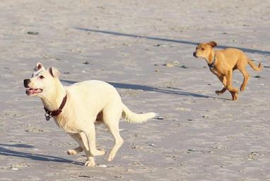 Keywords: run dogs play batons movement fun great beach