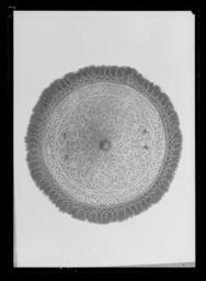 | Keywords: Rundsköld, Italien, 1500-talets andra hälft - Livrustkammaren - 44034.tif Svagt konisk sköld mjukt övergående i konisk spets med rundad skadad ände med hål för knopp eller dyl Omvikt räfflad kant <br/><br/>Etsad yttäckande ornering i form av ytterst en ring b 70 mm med en löpande bildfris avbruten av sex 8-formiga fält med flätmönster Innanför ringen ett komplicerat flätmönster av 10 mm breda band allt mot prickad bakgrund <br/>Dekor i ringen fält 1 I mitten enhörning vänd v mot sittande kvinna som med h hand håller om mulen och med v hand om manen på enhörningen till v hund Till h om enhörningen två springande hundar och en stående man i lårkort dräkt i h hand hillebard Bakgrund i form av landskap med träd över enhörningen en fågel <br/>Fält 2 Landskap med till v jägare som lägger an bössa med trädstöd mot fågel fyra hundar till h drevkarl med spjut <br/>Fält 3 I mitten hus och därframför en ringlande väg till v man med bardisan två hundar till h stenbock och hund <br/>Fält 4 Landskap med träd i mitten vildsvin till h två hundar till v jägare med vildsvinsspjut och hund <br/>Fält 5 Landskap med träd till h björn vänd åt v över björnen en åt h flygande fågel i mitten två hundar till v stående man med v hand lyft blåser i jakthorn bakom mannen två hundar <br/>Fält 6 I mitten hjort till h man med fällt bardisanliknande spjut hund till v två hundar <br/><br/>Dekor på mittpartiet <br/>I rankverket utsparat sex sköldformiga fält med stående människor <br/>Sköld 1 Kvinna i rustning och långkjol profil v båda händer lyftade och hållande skål flygande band <br/>Sköld 2 Man i antikiserande rustning profil h stödjande sig på bardisan <br/>Sköld 3 Kvinna som i sköld 1 v arm håller palmblad som vilar på axeln h hand en på marken stående sköld <br/>Sköld 4 Man som i sköld 2 stödjer sig på ett yxliknande stångvapen <br/>Sköld 5 Kvinna som i sköld 1 i h hand yxliknande stångvapen <br/>Sköld 6 Man som i sköld 2 v hand stödjer sig på sköld <br/><br/>Bandflätningen löper mellan sköldarna samman i maskaroner banden nertill utgår ur munnen Ovanför maskaronerna fält med fåglar varav 2 ugglor nedanför maskaronerna utefter ytterringen delfiner I övrigt i de utsparade fälten rustningsdelar ibland i form av trofégrupper harar urnor mm <br/><br/>Innanför den räfflade kanten fäst en röd silkesfrans b ca 70 mm och därpå en i nätmönster flätad guldfrans Fransarna fästade med nitar med välvda mässingshuvuden <br/><br/>Två + två nithuvuden för bärremmarna höga svagt koniska huvuden med skruvskåra och filade linjer <br/><br/>Skölden invändigt klädd med rött mycket slitet läder På mitten fäst en rektangulär platta l 375 mm b 85-105 mm Därunder fäst dels handrem i form av rep klätt med läder samt en bred spännrem b ca 80 mm urspr med två spänntampar den yttre saknas En oval sölja av förgyllt stål fäst på läderrem l 75 mm b 30 mm På ena sidans nitar fäst bärrem b 30 mm o l ca 85 mm med likadan sölja som spännremmens söljremmens l 190 mm original caption Erövringen av Warszawa Karl X Gustavs död och begravning ca other date - 1550 1600 steel - silk Färg röd material silke - gold thread - leather g 4050 size mm 585 120 LRK Karl VIII Knutsson Bonde av Sverige kung Wawel 1000-2000 2000 Eagle and Three Crowns 2002 Eagle and Three Crowns 2002 Örnen och de tre kronorna 2003 Krigsbyte 2007-2008 place of origin original filename LN_B09435_012315 45171 inventory number LRK 9736 44034 CC0 Rundsköld Italien 1500-talets andra hälft - Livrustkammaren - 44034-negative tif <gallery caption Different images of same object > File Rundsköld - Livrustkammaren - 14 tif File Rundsköld - Livrustkammaren - 59939 tif </gallery> Funeral of Charles X Gustav of Sweden Media contributed by LSH unmatched event Media contributed by LSH unmatched objKeyword Shield images from Livrustkammaren Media contributed by LSH 2013-10 |