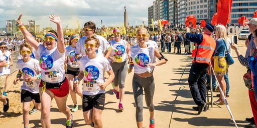Keywords: runners running jogging nice weather beach sea blue sky laughing smiling