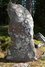 | Keywords: sweden sverige botkyrka grödinge ljunghem bröta brötastenen runsten runestone runor runes geotagged outdoor I Botkyrka kommun finns det en runsten som kallas för Brötastenen, den står nära gränsen till Nynäshman kommun och i närheten av Ljunghem. Texten på stenen läste jag jag som: "+ uihmar + let + rai[sa] + s(a)en + þina + at + iaruta + mah + auk + ferha + sin + auk + buþur + ka????t +" Jag försökte tolka texten men det var svårt på grund av den konstiga stavning som förekommer på stenen, te.x står det "sean" istället för sten, stin eller stain, jag misstänker att detta kan vara ett fel då man får ordet "sten" genom att byta ut A mot T. Det jag kom fram till var "Vihmar lär resa denna sten åt [Jaruta mah] och sin [Verha] och broder [ka__t]". Stenen är från medeltiden och under denna tid verkar stavningen bli krångligare. Den officiella översättningen lyder, "Vigmar lät resa denna sten efter Jörunde, sin frände och kamrat... broder...", men den översättningen tror jag man skall man kanske vara lite skeptisk till. Brötastenen står troligen nära sin ursprungliga plats och vad jag vet så reste man stenen 1854 efter att den hade ramlagt omkull och att man 1911 flyttade stenen några meter i samband med att man grävde ur åsen för att dra fram den nya vägen. En sak som kan vara värt att notera är att namnet "Vihmar/uihmar" även nämns på runsten Sö 298 och att det troligen är samma person son har gjort dessa stenar. (RAÄ Grödinge 215:1) I Botkyrka kommun finns det en runsten som kallas för Brötastenen, den står nära gränsen till Nynäshman kommun och i närheten av Ljunghem. Texten på stenen läste jag jag som: "+ uihmar + let + rai[sa] + s(a)en + þina + at + iaruta + mah + auk + ferha + sin + auk + buþur + ka????t +" Jag försökte tolka texten men det var svårt på grund av den konstiga stavning som förekommer på stenen, te.x står det "sean" istället för sten, stin eller stain, jag misstänker att detta kan vara ett fel då man får ordet "sten" genom att byta ut A mot T. Det jag kom fram till var "Vihmar lär resa denna sten åt [Jaruta mah] och sin [Verha] och broder [ka__t]". Stenen är från medeltiden och under denna tid verkar stavningen bli krångligare. Den officiella översättningen lyder, "Vigmar lät resa denna sten efter Jörunde, sin frände och kamrat... broder...", men den översättningen tror jag man skall man kanske vara lite skeptisk till. Brötastenen står troligen nära sin ursprungliga plats och vad jag vet så reste man stenen 1854 efter att den hade ramlagt omkull och att man 1911 flyttade stenen några meter i samband med att man grävde ur åsen för att dra fram den nya vägen. En sak som kan vara värt att notera är att namnet "Vihmar/uihmar" även nämns på runsten Sö 298 och att det troligen är samma person son har gjort dessa stenar. (RAÄ Grödinge 215:1) |