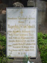 | Keywords: Rupertus Smolik tombstone Broumov.JPG Tombstone of Rupert Smolík 1832-1887 Czech priest and professor of theology and abbot of a Benedictine monastery It is located at a cemetery in Broumov own 2011-05-08 Jan Pešula Cc-zero Broumov Taken with Samsung S600 Abbots of Břevnov Monastery |