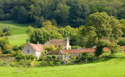 Keywords: house farmhouse rural english british countryside landscape trees woods pasture fields lush