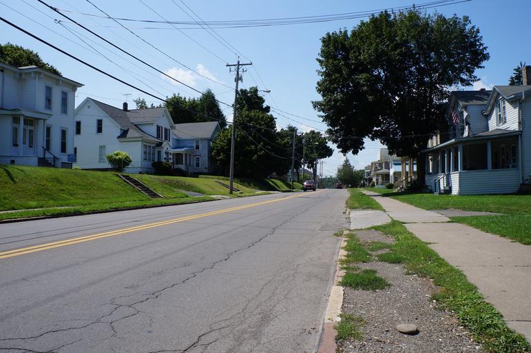 Keywords: rural streets road outdoor asphalt tree scene home environment grass residential exterior roof estate property housing