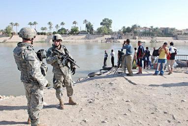 | Keywords: Rush hour at the river DVIDS59242.jpg en West Springfield Mass native Sgt Nickolas Crawford left and Laurel Mont native Sgt Zachary Miller both members of Company B 407th Support Battalion 2nd Brigade Combat Team 82nd Airborne Division survey the busy ferry traffic at a dock in the Graya'at section of Baghdad's Adhamiyah District Sept 12 The ferry runs from daybreak until late at night taxiing people across the Tigris River 2007-09-25 Staff Sgt Michael Pryor https //www dvidshub net/image/59242 59242 2007-09-25 15 18 BAGHDAD IQ PD-USGov 82nd Airborne Division Images from DoD uploaded by Fæ |