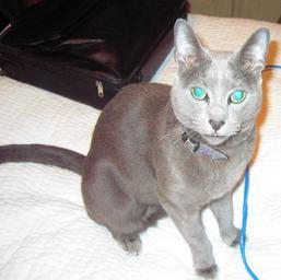 Keywords: Ruso Azul.jpg Male Russian Blue cat Two and a half years old Cannon Digital IXUS V3 08/07/2007 Russian Blue Cats in beds Sitting cats Eyeshine cats