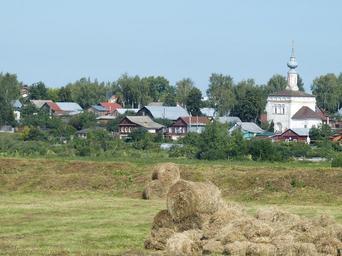 Keywords: russia historically golden ring building orthodox church old town meadow straw hay wood