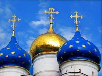 Keywords: russia sergiev posad temples architecture dome showplace sky religion orthodoxy clouds blue golden domes