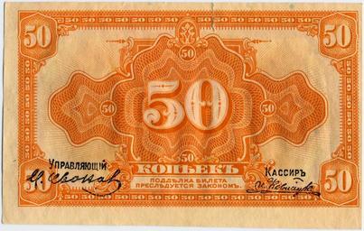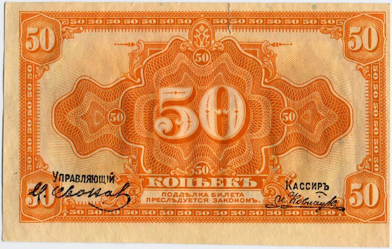| Keywords: Russia-Siberian Provisional Government-Banknote-0.5-Signed-Reverse.png  Banknote of Siberian Provisional Government 50 kopecks signed reverse Банкнота В еменного Сиби ского п авительства 50 копеек с подписями об атная сто она own <br /> Banknote is courtesy of collector who wants to remain anonymous Thank you Банкнота п едоставлена коллекционе ом пожелавшим остаться анонимным Спасибо 1918 Siberian Provisional Government PD-Old-70 currency Banknotes of Siberian Provisional Government Banknotes of Russia printed by American Bank Note Corporation 1918 Banknotes with a face value of 50 Orange banknotes |