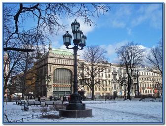 Keywords: russia st petersburg russia nevsky avenue street park lantern winter city trees building