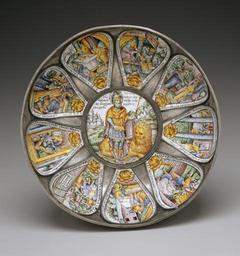 | Keywords: Russian - Bowl with Judah and Lion Surrounded by Scened from the Book of Esther - Walters 4446.jpg The source for the scenes on this bowl and on a similar one in the Moscow Kremlin Armory inv MP-1079 is the illustrated Bible of Nicholaus Johannes Piscator 1586-1652 a Dutch publisher and engraver This Bible was translated into Russian in the 1670s and became a source for images on objects and church frescoes The paintings like the inscriptions are freely adapted there are more scenes on the bowl than are illustrated in the Piscator Bible and sometimes a single scene has been painted in two parts to accommodate the lobes of the bowl The image in the central medallion seems to allude to the young Russian Czar Peter I r 1682-1725 while the surrounding scenes from the Book of Esther may refer to his mother the Czarina Natalia Kirillovna Naryshkina Formerly attributed to a Solvychegodsk workshop the bowl is more likely to have been made in Moscow ca 1690 Early Modern silver gilt painted and filigree enamel Diam cm 25 72 accession number 44 46 24647 Alexandre Polovtsoff Aleksandr Aleksandrovich Polovtsov Saint Petersburg and Paris by purchase Henry Walters Baltimore date of acquisition unknown by purchase Walters Art Museum Henry Walters Acquired by Henry Walters Translation Jacob s son from whom Christ descended Judah said that the lion will mightily conquer the enemies cf Rev 5 5 Out of a thousand virgins Esther alone finds favor with the king and receives from him a royal crown on her head cf Esther 2 17 Mordecai served in the palace He commands Esther not to reveal her kindred The same he commanded about her people cf Esther 2 19-20 For seven days in the house of King Artaxerxes Ahasuerus his officials and servants made merry and people of all ages ate cf Esther 2 18 Two chiefs of the guard of the king s bed grieved because Mordecai had been promoted sought to kill King Artaxerxes Ahasuerus cf Esther 2 21 Aman Haman most fierce enemy of the Jews swaggers and takes a ring from the king s finger cf Esther 3 1 10 Messengers are sent by Aman Haman throughout Artaxerxes Ahasuerus kingdom with a letter commanding to exterminate the race of the Jews in one day cf Esther 3 13 Esther sends the eunuch Achrathaeus Hathach to Mordecai to learn the truth And Mordecai told her what had happened to him cf Esther 4 5-7 Esther approaches the king with a perturbed heart but not with sad news and summons to a great banquet cf Esther 5 1-4 Aman Haman is accused the queen reveals his evil deed and he is hung upon the cross prepared for Mordecai cf Esther 7 5-10 Russian Art Icons and Decorative Arts from the Origin to the Twentieth Century The Walters Art Gallery Baltimore 1959-1960 The Hebrew Bible in Christian Jewish Muslim Art The Jewish Museum New York 1963 A Millennium of Christianity Russian Art from The Walters Art Gallery The Walters Art Gallery Baltimore 1988-1989 Russian Enamels The Walters Art Gallery Baltimore 1996-1997 place of origin Moscow Russia Walters Art Museum license Baroque art in the Walters Art Museum Decorative and applied arts of Russia Media contributed by the Walters Art Museum needs category review Piscator Bible Media contributed by the Walters Art Museum needs artist review Solvychegodsk |