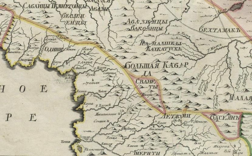 | Keywords: Russian Empire 1745 (Map XI HQ).E.jpg ru Пе вый официальный атлас Российской импе ии 1745 Положение мест между Чё ным и Каспйским мо ями вклчючает Кубань Г узинскую землю и устье еки Волги О игинальная ка та г ави ована на меди и аск ашена в учную аква елью en First official geographic atlas of the Russian Empire 1745 Map of places beetwen Black Sea and Caspian Sea include Kuban Georgia and mouth of Volga river Image Russian Empire 1745 Map XI HQ jpg Original from <br/> Атлас Российский 1745 циф овая копия сделана Российской госуда ственной библиотекой http //www rsl ru Geographic atlas of the Russian Empire 1745 digital copy made by Russian State Library http //www rsl ru/en 1745 РА Russian Academy of Science PD-Art-100 Derivative works of Atlas of the Russian Empire 1745 Old maps of the Caucasus 18th-century maps of Georgia Old maps of Imereti Old maps of Samegrelo History of Samegrelo Maps of the history of Abkhazia Maps of Circassia |