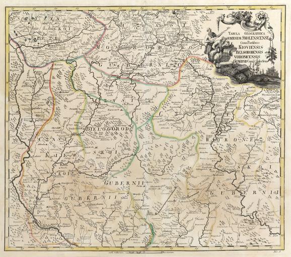 | Keywords: Russian Empire 1745 (Map V in Latin).jpg  Russian Empire 1745 Map IV in Latin jpg Russian Empire 1745 Map VI in Latin jpg ru Пе вый официальный атлас Российской импе ии 1745 Ка та Смоленской губе нии с частями Киевской Белго одской и Во онежской губе ний О игинальная ка та г ави ована на меди и  аск ашена в учную аква елью en First official geographic atlas of the Russian Empire 1745 Map of Smolensk governorate and parts of Kiev Belgorod and Voronezh governorates Hand-coloured copper engraving Атлас Российский 1745 en Geographic atlas of the Russian Empire 1745 РА Russian Academy of Science 1745 <gallery> File Russian Empire 1745 Map V HQ jpg Ка та на  усском языке Same map in Russian File Russian Empire 1745 Map V jpg Че но-белый ва иант на  усском низкое качество Black white in Russian low quality </gallery> PD-old-100 Atlas of Russian Empire 1745 year in Latin |