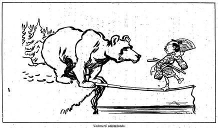 | Keywords: Russian-Japanese bear-bambus.jpg en English Bold undertaking This is the title of this ironically image appeared in the Parisian Figaro in occasion of the outbreak of the Russo-Japanese war The mock image is trying to say that small Japan was a bold undertaking sent an ultimatum to strong Russia and with war threatened It's one so a dangerous business as if it is a Japanese artist a weak bamboo would go over the sea and on the other side would a huge bear waiting him During the war however the clever little Japan thoroughly handled with the bear Magyar Vakmerő vállalkozás Ezzel a címmel jelent meg ez a gúnykép a párizsi Figaróban az orosz-japán kitörése alkalmával A gúnykép azt akarja mondani hogy a kis Japántól vakmerő vállalkozás volt az hogy ultimátumot küldött a hatalmas Oroszországnak s háborúval fenyegette meg Olyan veszedelmes vállalkozás ez mintha egy japán artista egy gyönge bambusznádon menne át a tengeren s a másik parton egy hatalmas medve várná A háborúban azonban az ügyes kis japán alaposan elbánt a medvével Tolnai világtörténelme VII rész A legújabb kor 20-Napjaink története Tolnai nyomdai műintézet és kiadóvállalat R -T kiadása Budapest round 1920 page 192 Ballagi Aladár and 14 co-authors 1904 PD-Old File Russian-Japan bear-bambus jpg This file has whole text History of Japan Russo-Japanese War in 1904 1904 in military history War in art cc-by-3 0 |