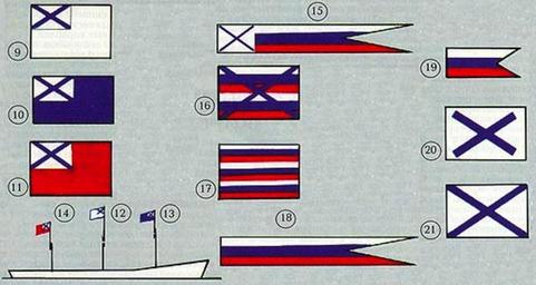 | Keywords: Russian Navy Flag Chart 1700 part 2.jpg en Russian Navy Flag Chart 1700 part 2 9 Flag of Admiral's Squadron Main fleet 1700-1712 10 Flag of Vice Admiral's Squadron Avant-garde 1700-1865 Auxilliary Naval Ensign 11 Flag of Rear Admiral's Squadron Rear Guard 1700-1865 12 First Admiral flag on Grots-Tenge 13 Vice-Admiral flag on Fore-topmast 14 Rear-Admiral flag on Cruys-topmast 15 Ordinary captain's pennant of Russia 1720-1870 16 Transition flags pattern 1698-1700 17 Flag of Russia 9 Stripes 18 Pennant 1700 19 Pennant 1700 20 Naval Ensign 1710-1712 21 Naval Ensign St Andrew flag ru Русский флот Флаг Диаг амма 1700 часть 1 9 Флаг адми ала эскад илья ко дебаталии 1700 1712 10 Флаг вице-адми ала эскад илья аванга да 1700 1865 «Флаги вспомогательных судов» 11 Флаг конт -адми ала эскад илья а ье га да 1700 1865 12 Адми альский флаг поднимался на г отс-теньге 13 вице-адми альский на фо -стеньге 14 конт -адми альский на к юйс-стеньге 15 О дина ный капитанский вымпел 1720-1870 16 Флаги пе еходного исунка 1698 1700 17 Флаг России девятью полосами 18 Пе вый вымпел до 1700 19 Пе вый вымпел до 1700 20 Ко мовой флаг 1710-1712 21 Ко мовой Анд еевский флаг 1700 http //www vokrugsveta ru/vs/article/1250/ unknown other versions PD-RusEmpire Flag charts by Russian Navy Naval flags of the Russian Empire |