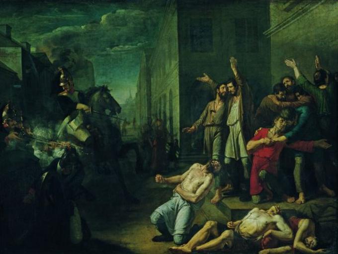 | Keywords: Russian-patriots-shot-1812.jpg ru Тихонов Т Расст ел ф анцузами усских пат иотов в оскве в 1812 году 1813 Из соб ания Русского узея С -Пете бу г en Russian patriots are shot by the French in Moscow in 1812 Painted in 1813 Collection of the Russian Museum St-Petersburg 1813 http //www virtualrm spb ru/ru/resources/galleries/otechestvo o 4721 creator Mikhail Tikhanov other versions PD-Art Mikhail Tikhanov | ||||
