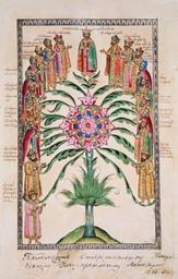 | Keywords: Russian princes family tree (1660-80s, Tatiana Mikhailovna's sinodik, GIM).jpg  «Родословное д ево  усских князей и ца ей»  иниатю а из Синодика ца евны Татианы  ихайловны 60-80-г гг XVII в ГИ 80370 Воск  66 http //www pravenc ru/text/159104 html 60-80-г гг XVII в anonymous PD-old-100 Files uploaded by Shakko from various sources Manuscripts in Moscow State Historical Museum 17th-century art in the Moscow State Historical Museum Tatiana Mikhailovna Family trees of Russian rulers in art Sinodik |