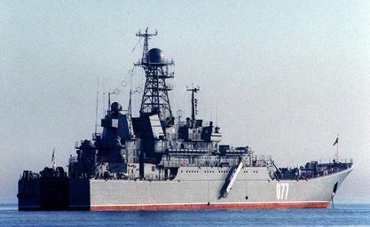 | Keywords: Russian Ropucha II Class landing craft.JPEG A Russian Ropucha II Class Type B 23 Landing Craft Tank floats at anchor off the shores of Vladivostok Russia during Exercise COOPERATION FROM THE SEA '96 The exercise is a joint venture between US and Russian naval forces designed to improve disaster-relief operations and to further understanding between the two nations http //www defenseimagery mil; http //www defenseimagery mil/imagery html;jsessionid 71AAC7A6E7EB5CDDFA9A7C4A4742B1D1 guid 8ac07af9a1372719478015863b64efc214e5c66b VIRIN 960816-N-3149V-003 Jeff Viano U S Navy 1996-08-16 PD-USGov-Military-Navy Peresvet ship 1991 Cooperation From the Sea |