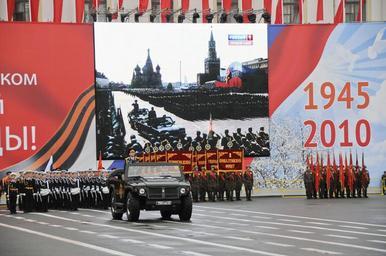 | Keywords: Russian victory parade in St. Petersburg.jpg A Russian honor guard marches during the opening ceremony of the 65th anniversary of the Victory in Europe Day parade The Russian minister of defense invited Vice Adm Harry B Harris Jr commander of the U S 6th Fleet and the crew of the guided-missile frigate USS Kauffman FFG 59 to participate in the celebration http //www navy mil/; http //www navy mil/view_image asp id 85336 VIRIN 100510-N-9815L-028 2010-05-10 William Pittman U S Navy PD-USGov-Military-Navy Victory Day in Saint Petersburg Military parades in Russia Victory Day in Russia 2010 GAZ-2975 Tigr May 2010 in Saint Petersburg |