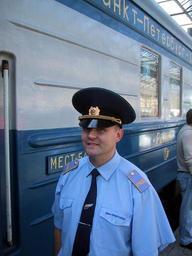 | Keywords: RussianConductor.jpg A Russian train assistant conductor in front of the express train Repin to St Petersburg Photo taken at Helsinki railway station in July 2002 self-photographed 2002-07-21 Mikko Tuomela Public Domain Railway conductors Rail transport in Russia Trains of Russia Helsinki Central railway station Passenger trains in Finland People of Russia |