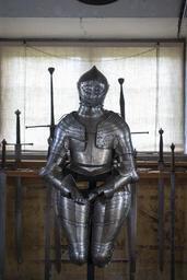 | Keywords: Rustning, 1500-talets slut - Skoklosters slott - 100602.tif LSH artwork sv Helrustning ej komplett Alla delar stämplade med Augustburgs pinjekotet och sax Enligt 1930 års katalogkort även med initialerna C S har ej kunnat upptäckas nu 1500-talets slut <br/>Bestående av 19760819 <br/>Bröstharnesk 14855 1<br/>Ryggharnesk 14855 2<br/>Ringkrage 14855 3<br/>ländskört 14855 4<br/>h axelstycke med armskydd 14855 5<br/>h handske 14855 6<br/>v axelstycke med armskydd 14855 7<br/>h lårskena med knäbuckla 14855 8<br/>v lårskena med knäbuckla 14855 9<br/>hjälm 14855 10<br/>v handske 14855 11<br/>14855 1 Bröstharnesk Låg rundad snedräfflad halshanr Dubbla graverade linjer kring hals armar och nedre kant Svagt markerad mittås Två mässingsnitar i nederkanten - för att fösta tassetterna vilka nu saknas Har troligen haft dekor av mässingsnitar utmed nederkanten Spår finnes Fastnitade läderremmar vid axlarna - att spännas vid ryggstycket <br/>H 380 mm bröstvidd 500 mm <br/>14855 2 Ryggharnesk Låg rundad snedräfflad halskant Graverade linjer på motsvarande sätt som bröstharneskets axelstycken I midjans högra sida fastnitad vit sämskad rem - spår av läderrem i vänster sida finnes <br/>H 365 mm ryggvidd 530 mm <br/>14855 3 Ringkrage med halskrage bestående av tre lameller upptill avslutad med snedräfflad kant Mässingsnitar Fodrad med vitt matlareat tyg kantat med röd sammet <br/>14855 4 Ländskört Bestående av fem lameller med mässingsnitar Påhakat vid ryggharnesket på högra sidan spärrat med hake <br/>H 180 mm b 870 mm <br/>Tillbehör Stativ nr 14866<br/>14855 5-7 11 Axelstycken med armskydd och till hörande handskar Axelstycket består av fem lameller - ryggbladen stora De sidor som går in över överarmsskyddet har tandad kant Främre nedre lamellen med mässingsros saknas på 14855 7 Axelskydd med mässingsfodrat spänne i vilket rem från ringkragen spännes Armbucklan med snidad lotusblomma Handske nr 14855 6 är komplett med stelt handledsskydd och hand-och fingerskydd T o m främre knogen bestående av lameller 14855 11 saknar de sex främre lamellerna med knogskydd 14855 11 har röd sammetskantad överkant - saknas på 14855 6 <br/>L armskydd 770 mm diam 470 mm l handske 67 mm fel mått diam 97 fel mått mm<br/>14855 8-9 Lårskenor med knäbucklor Lårskenan i två delar Den övre bestående av 4 lameller - den undre av en hel skena med knäbuckla av 8 lameller nr 14855 8 saknar nedersta delen Skarven mellan de båda delarna ornerade med räffelgraverad rund kant Dekor av graverade linjer och mässingsnitar <br/>L 520 mm b 360 mm <br/>14855 10 Hjälm visir hjälm låg mjuk rundad kant Utan hjälmkrage nertill avslutad med liten kant räffelgraverad Högra sidan med stödstång för visiret Invändigt korsade hjässremmar av sämskat skinn <br/>H 300 mm original caption Rustning 1500-talets slut <br/> Nyckelord 1500-tal Rustningar Rustkammaren Föremålsbild end other date century 16 size mm 1040 SKO C S place of origin original filename sm_dig15696 35687 inventory number SKO 14855 100602 CC-BY-SA Miguel Herranz <gallery caption Different images of same object > File Rustningshandske 1500-talets slut - Skoklosters slott - 100608 tif File Armskydd till rustning 1500-talets slut - Skoklosters slott - 100607 tif File Rustning och nitar 1500-talets slut - Skoklosters slott - 100605 tif File Hjälmvisir 1500-talets slut - Skoklosters slott - 100603 tif File Rustning och nitar 1500-talets slut - Skoklosters slott - 100609 tif File Hjälmvisir 1500-talets slut - Skoklosters slott - 100604 tif File Rustning och nitar 1500-talets slut - Skoklosters slott - 100606 tif </gallery> Armour 16th century Miguel Herranz Media contributed by LSH unmatched keyword Media contributed by LSH 2015-11 Arms and armour in the Skokloster Castle |