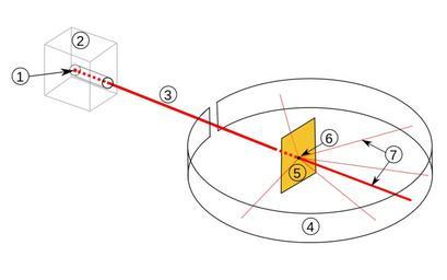 | Keywords: Rutherford Scattering.svg Rutherfordscher Streuversuch nach Ernest Rutherford 1909 1 Radioaktives Radium 2 Bleimantel zur Abschirmung 3 Alpha-Teilchenstrahl 4 Leuchtschirm bzw Fotografieschirm 5 Goldfolie 6 Punkt an dem die Strahlen auf die Folie treffen 7 Teilchenstrahl trifft den Schirm nur wenige Teilchen werden abgelenkt Rutherford scattering Rutherfordscher_Streuversuch svg 2010-03-09 19 01 UTC Rutherfordscher_Streuversuch svg Sundance Raphael 15 22 19 Dez 2006 CET Sundance Raphael wikibooks de derivative work Fujnky <span class signature-talk >talk</span> Remake Fujnky Rutherfordscher_Streuversuch svg original upload log This image is a derivative work of the following images File Rutherfordscher_Streuversuch svg licensed with PD-user 2009-08-19T17 13 01Z MichaelFrey 588x369 13722 Bytes <nowiki>a little bit clean up</nowiki> 2009-08-19T11 37 13Z Matthias M 588x369 13438 Bytes <nowiki> Rutherfordversuch Transferred from http //de wikibooks org de wikibooks Original text own work 19 12 2006 2006 12 19 original upload date wik</nowiki> Uploaded with derivativeFX Geiger-Marsden experiment |