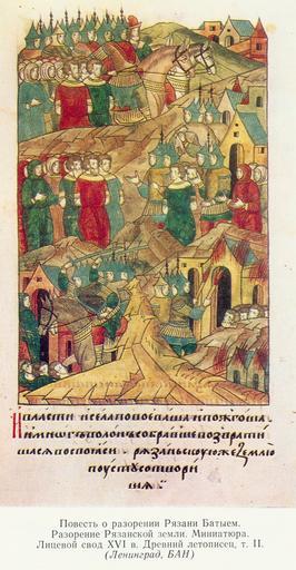 | Keywords: RYAZAN.JPG  ru Повесть о  азо ении Рязани Батыем  иниатю а Лицевой свод XVI в Д евний летописец т II Санкт-Пете бу г БА http //rutenica narod ru/batu html author XVI век PD-Art Mongol invasion of Rus Culture of Ryazan Oblast Facial Chronicle v 4 - Golytsinskiy tom 1114-1247; 1425-1472 1237 in Russia |