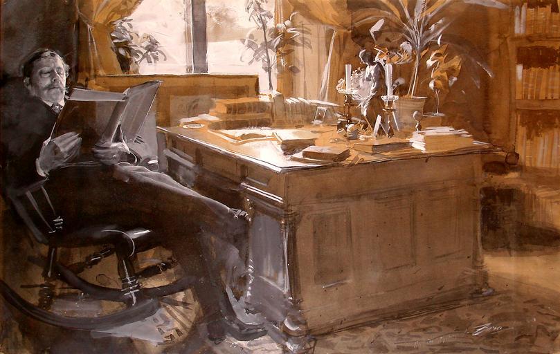 Keywords: Rydberg Viktor 1.jpg Artwork langswitch Swedish author Viktor Rydberg reading a book in his rocking-chair Författaren Viktor Rydberg läser en bok i sin gungstol ca 1890 painting accession number object history credit line signature lower right http //bildbank gu se/gu/Standard/RecordView jsp ; photo by Mattias Jacobsson <gallery>Rydberg Viktor 1 cropped jpg cropped</gallery> Viktor Rydberg Paintings by Anders Zorn Paintings of sitting men reading indoors Paintings of sitting men Men facing right and looking right People sitting in rocking chairs 19th-century cabinet portraits Men reading in art PD-old-auto 1920 |