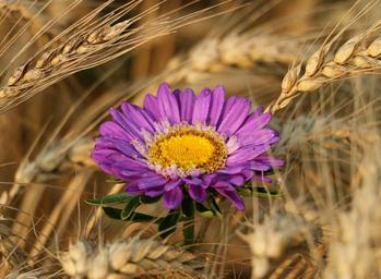Keywords: rye spikes flower astra purple field harvest mature
